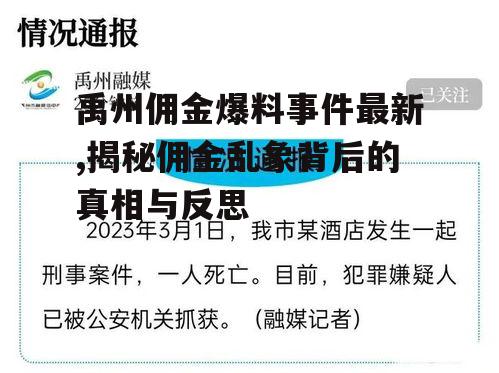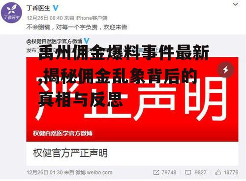 禹州佣金爆料事件最新进展:揭秘背后真相